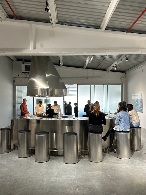 Gelelim yemek deneyimine… Ortaya özel olarak tasarlanan bu mutfağı sergi kapsamında herkes gezebiliyor ancak ayda iki kere özel deneyim gecelerine de ev sahipliği yapıyor. Bizim katıldığımız performans gecesinin konuğu koku uzmanı Vedat Ozan’dı. Şefimiz ise Rakı Balık Ayvalık kitabından tanıdığımız Arzu Acurol’du. TUNCA ve Vedat Ozan’ın anlatımıyla Ayvalık lezzetlerine doyduğumuz bir akşam... Kimi zaman yemeğin ağırlığı çöker gibi oluyor. Metalle temas sizi kendinize getiriyor ve tekrar yakalıyorsunuz sohbeti. Performans sadece yemek yapma ve yemek yeme eylemini değil, birbirini tanımayan insanların mutfak etrafında kurduğu diyalogu da kapsıyor. Mutfak, merkezinde pratiği üreten kişiyi barındırdığı için izleyiciler rahatlıkla performansın bir parçası haline gelebiliyor. Demokratik bir oturma düzeni de buna kolaylık sağlıyor. İzlediğinizin tadına bakıp deneyimleyen bir çağdaş sanat izleyicisi olarak hissediyorsunuz kendinizi.